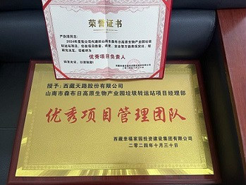近日,西藏幸福家園投資建設(shè)集團(tuán)有限公司向西藏天路股份有限公司山南市森布日高原生物產(chǎn)業(yè)園垃圾轉(zhuǎn)運(yùn)站項(xiàng)目經(jīng)理部授予“優(yōu)秀項(xiàng)目管理團(tuán)隊(duì)”榮譽(yù)稱號,向項(xiàng)目負(fù)責(zé)人嚴(yán)韻濠頒發(fā)榮譽(yù)證書,表彰其在項(xiàng)目質(zhì)量、進(jìn)度、安全等方面的優(yōu)異表現(xiàn)。