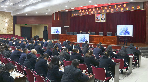 為深入貫徹落實黨的二十屆三中全會精神,進一步推進黨風廉政建設,12月9日,西藏天路股份有限公司紀委召開2024年第四期廉潔從業警示教育大會,公司黨委書記、董事長頓珠朗加參加會議并講話,黨委專職副書記、董事、工會主席西虹主持會議。