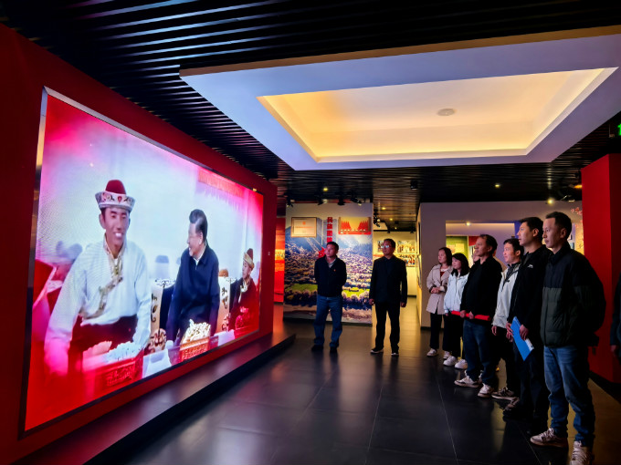 活動(dòng)中,大家觀摩了嘎拉村“團(tuán)結(jié)頌”主題教育展覽館。展覽館以“團(tuán)結(jié)頌、振興頌、英雄頌、解放頌”四大主題展區(qū),通過一幅幅歷史照片和詳實(shí)的發(fā)展歷程展示,生動(dòng)呈現(xiàn)了嘎拉村在黨的堅(jiān)強(qiáng)領(lǐng)導(dǎo)下,各族群眾團(tuán)結(jié)奮斗,實(shí)現(xiàn)美麗鄉(xiāng)村建設(shè)的巨大變化。同時(shí),黨支部依托展覽館黨員初心學(xué)堂電子平臺,開展黨建知識競賽,黨支部書記喬次仁圍繞總書記重要回信精神講黨課。